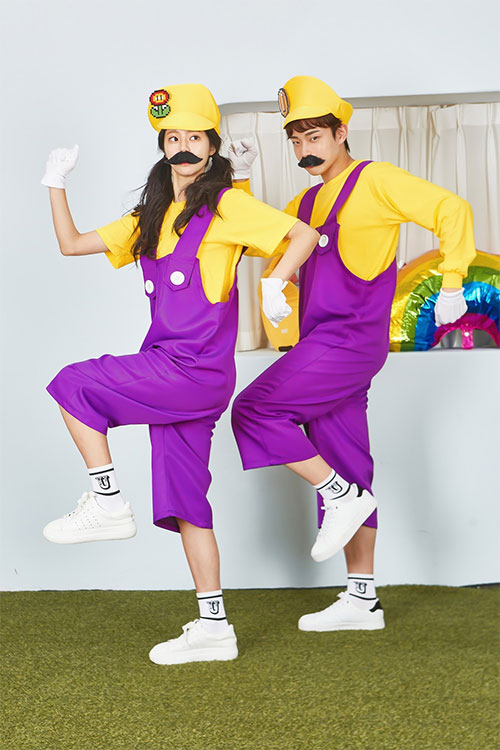 ST550 버섯돌이 보라 멜빵세트 (마리오 옐로우모자 포함)